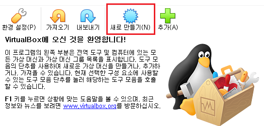 설치된 Virtual Box를 실행시킵니다.