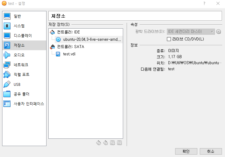 컨트롤러: IDE > '비어 있음' 클릭 > 우측 CD모양 버튼 클릭.