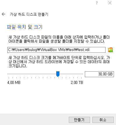 전 혹시 몰라서 30 GB로 했습니다.
