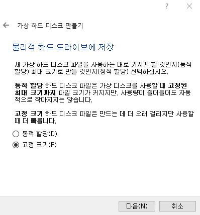 단순히 연습용이라면 용량은 대충 10 GB로 하셔도 될 것 같아요.