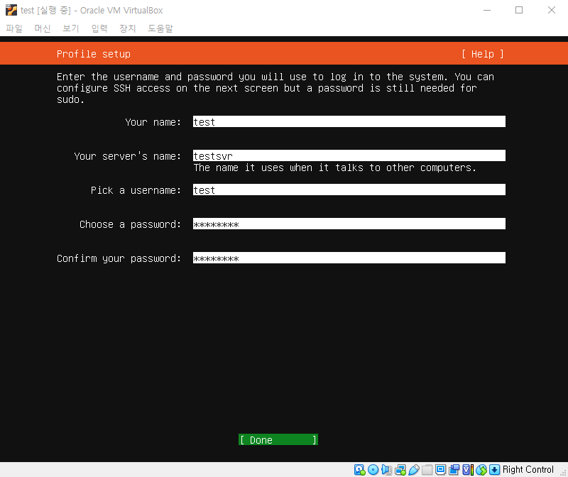 Confirm your password: 로그인할 때 사용할 패스워드 확인