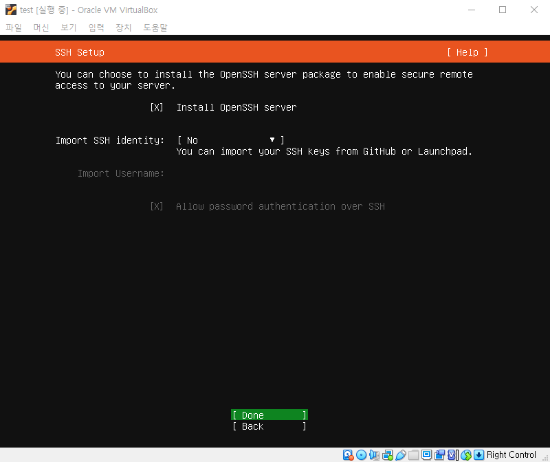 우분투를 설치하면서 이 부분을 체크하면 따로 설치할 필요없이 원격으로 SSH를 사용할 수 있습니다.